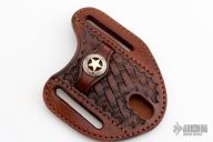Leather Belt Sheath set up for a forward canted carry by A&M Leather. Silver and gold concho. New from maker.
