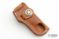Hand tooled Leather Belt Sheath from A&M Leather. Features a gold and silver concho. New from maker.