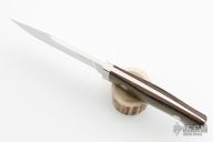 Robert Waldorf Loveless (January 2, 1929 – September 2, 2010), a.k.a. Bob Loveless or RW Loveless, was an American knife maker who designed and popularized the hollowground drop point blade and the use of full tapered tangs and screw-type handle scale fasteners within the art of knifemaking. A hunting knife on the table of nearly any American knifemaker today will show the influence of knifemaker Bob Loveless. In the beginning he turned the knife industry on its ear, and made modern handmade knifemaking possible. He was at the beginning of everything: The Knifemaker’s Guild, drop point hunters, high quality steels, custom designs, How to Make Knives books, the Japanese Knifemakers Guild, the rise of Japanese cutlery manufacturers, utilizing handmade designs for American manufacturers. You name it and Loveless has had a hand in it. He is cited by other knifemakers and collectors as one of the most innovative custom knife makers in the world. Inducted into the Blade Magazine Cutlery Hall of Fame in 1985.