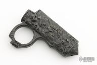 Manufactured in France by 2 Saints Tactical, this bronze Maxi Bic lighter case is absolutely incredible.  It includes what 2 Saints Tactical calls their "love ring" and a skull crusher/glass breaker on the butt-end. It features an awesome bronzed finish with Bastinelli's own Reaper Skulls all over the place. Lighter not included. Excellent condition.