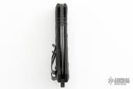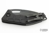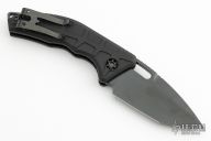 This Martyr by Heretic Knives features a black tanto blade with false top edge, notched thumbrest. The handle has a black aluminum frame, DLC finished titanium hardware, DLC push button, DLC backspacer and tip up clip. Comes with original box, card and drawstring bag. Excellent condition.