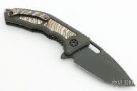 This Medusa Manual by Heretic Knives features a black tanto blade with false top edge, notched thumbrest and flipper. The handle has a carbon fiber frame with flamed titanium inlays, backspacer and a tip up clip with ceramic ball. Comes with original box and drawstring bag. Excellent condition. S/N 00061