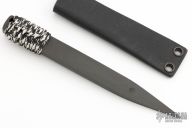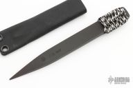 In 1988, he began making specialized knives for use by the military. This turned out to be fortunate turn of events, both for Mick and for the knife using world at large. Mick’s approach was to not get burdened by the weight of past designs. He started with a tabula rasa, a clean slate, informed only by his own experiences and knowledge of what a soldier needed in a knife. The knives he made didn’t look like the hunter-inspired knives seen in most PXs; instead they were almost brutish in their functionality: beefy, solid, and with unbreakable ¼” stock full tangs. These knives were the first indication of his innovative approach: in addition to their utilitarian design, the knives carried a subdued finish and subdued sheaths. No one carrying a Strider knife was going to be spotted because of sunlight glinting off of polished steel or a glossy leather sheath. Soldiers, policemen, and other men going into harm’s way couldn’t buy them fast enough. Mick sampled some good ideas, but made them great. For instance, he was not the first to wrap a knife handle with paracord, but he was the first to do it in a way that was tough enough for sustained infantry use. His knife line grew over the following years to include different varieties of fixed blades, all distinctive and many with specialized uses. But constant in all of them was a disregard for convention, and a desire to try new ideas. An example of this was the Ajax – it featured a very wide blade surface clearly designed to inflict damage. It drew on the weapons carried by Roman legionnaires, yet was modern and usable in the 21stCentury battlefield. Mick also worked on his technical skills, always striving to become better at the physical craft. At the 2002 Blade Show, a group of the best tactical knifemakers in the country decided to compete with each other to produce the most innovative and interesting fixed “battle blade” at the show. Mick’s entry, an incredible integral knife made out of ½” titanium stock with a zippered composite blade, gorgeous handles, and integral guard was the unanimous winner, and effectively retired the competition.