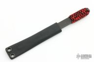 In 1988, he began making specialized knives for use by the military. This turned out to be fortunate turn of events, both for Mick and for the knife using world at large. Mick’s approach was to not get burdened by the weight of past designs. He started with a tabula rasa, a clean slate, informed only by his own experiences and knowledge of what a soldier needed in a knife. The knives he made didn’t look like the hunter-inspired knives seen in most PXs; instead they were almost brutish in their functionality: beefy, solid, and with unbreakable ¼” stock full tangs. These knives were the first indication of his innovative approach: in addition to their utilitarian design, the knives carried a subdued finish and subdued sheaths. No one carrying a Strider knife was going to be spotted because of sunlight glinting off of polished steel or a glossy leather sheath. Soldiers, policemen, and other men going into harm’s way couldn’t buy them fast enough. Mick sampled some good ideas, but made them great. For instance, he was not the first to wrap a knife handle with paracord, but he was the first to do it in a way that was tough enough for sustained infantry use. His knife line grew over the following years to include different varieties of fixed blades, all distinctive and many with specialized uses. But constant in all of them was a disregard for convention, and a desire to try new ideas. An example of this was the Ajax – it featured a very wide blade surface clearly designed to inflict damage. It drew on the weapons carried by Roman legionnaires, yet was modern and usable in the 21stCentury battlefield. Mick also worked on his technical skills, always striving to become better at the physical craft. At the 2002 Blade Show, a group of the best tactical knifemakers in the country decided to compete with each other to produce the most innovative and interesting fixed “battle blade” at the show. Mick’s entry, an incredible integral knife made out of ½” titanium stock with a zippered composite blade, gorgeous handles, and integral guard was the unanimous winner, and effectively retired the competition.
