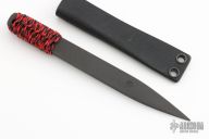 In 1988, he began making specialized knives for use by the military. This turned out to be fortunate turn of events, both for Mick and for the knife using world at large. Mick’s approach was to not get burdened by the weight of past designs. He started with a tabula rasa, a clean slate, informed only by his own experiences and knowledge of what a soldier needed in a knife. The knives he made didn’t look like the hunter-inspired knives seen in most PXs; instead they were almost brutish in their functionality: beefy, solid, and with unbreakable ¼” stock full tangs. These knives were the first indication of his innovative approach: in addition to their utilitarian design, the knives carried a subdued finish and subdued sheaths. No one carrying a Strider knife was going to be spotted because of sunlight glinting off of polished steel or a glossy leather sheath. Soldiers, policemen, and other men going into harm’s way couldn’t buy them fast enough. Mick sampled some good ideas, but made them great. For instance, he was not the first to wrap a knife handle with paracord, but he was the first to do it in a way that was tough enough for sustained infantry use. His knife line grew over the following years to include different varieties of fixed blades, all distinctive and many with specialized uses. But constant in all of them was a disregard for convention, and a desire to try new ideas. An example of this was the Ajax – it featured a very wide blade surface clearly designed to inflict damage. It drew on the weapons carried by Roman legionnaires, yet was modern and usable in the 21stCentury battlefield. Mick also worked on his technical skills, always striving to become better at the physical craft. At the 2002 Blade Show, a group of the best tactical knifemakers in the country decided to compete with each other to produce the most innovative and interesting fixed “battle blade” at the show. Mick’s entry, an incredible integral knife made out of ½” titanium stock with a zippered composite blade, gorgeous handles, and integral guard was the unanimous winner, and effectively retired the competition.