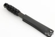 In 1988, he began making specialized knives for use by the military. This turned out to be fortunate turn of events, both for Mick and for the knife using world at large. Mick’s approach was to not get burdened by the weight of past designs. He started with a tabula rasa, a clean slate, informed only by his own experiences and knowledge of what a soldier needed in a knife. The knives he made didn’t look like the hunter-inspired knives seen in most PXs; instead they were almost brutish in their functionality: beefy, solid, and with unbreakable ¼” stock full tangs. These knives were the first indication of his innovative approach: in addition to their utilitarian design, the knives carried a subdued finish and subdued sheaths. No one carrying a Strider knife was going to be spotted because of sunlight glinting off of polished steel or a glossy leather sheath. Soldiers, policemen, and other men going into harm’s way couldn’t buy them fast enough. Mick sampled some good ideas, but made them great. For instance, he was not the first to wrap a knife handle with paracord, but he was the first to do it in a way that was tough enough for sustained infantry use. His knife line grew over the following years to include different varieties of fixed blades, all distinctive and many with specialized uses. But constant in all of them was a disregard for convention, and a desire to try new ideas. An example of this was the Ajax – it featured a very wide blade surface clearly designed to inflict damage. It drew on the weapons carried by Roman legionnaires, yet was modern and usable in the 21stCentury battlefield. Mick also worked on his technical skills, always striving to become better at the physical craft. At the 2002 Blade Show, a group of the best tactical knifemakers in the country decided to compete with each other to produce the most innovative and interesting fixed “battle blade” at the show. Mick’s entry, an incredible integral knife made out of ½” titanium stock with a zippered composite blade, gorgeous handles, and integral guard was the unanimous winner, and effectively retired the competition.
