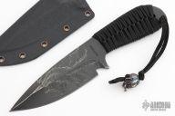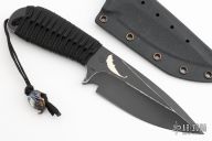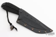 This Fighter from Mick Strider features a tanto blade with a nice deep swedge and false top edge, .215" with a blade depth of 1.835". This beast has a cord wrapped handle and a black kydex sheath. Comes with a custom Venom bead by Harding Inc. Excellent condition.