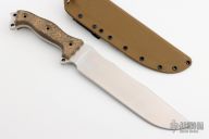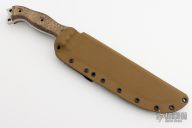 This Fusion Battle Mistress (NMFBM) #186 from the Busse Combat Knife Company features a satin finish blade, 5/16" blade stock, 2" blade depth. Full tang construction with textured old school snakeskin micarta handle. Comes with a BuyBrown kydex sheath. Has a few light scratches, otherwise excellent condition.