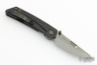 "The blade is convex on both sides in the tradition of the highly praised Japanese sword. This shape is both sharp and strong, and can still slice paper even after the 1,000 of hemp rope cuts. Using this blade form is one superb method of making an edge thick without losing of its sharpness. This is a knife of preeminent sharpness. You can enjoy its strong cutting capabilities for a long time. Even if used for rigorous cutting, the blade will not bite thanks to its convex shape. Other knives often will bite, and may nick if it is pulled out suddenly at that time. This knife scratches the plate of china. Please do not use it to cut food on the plate." The handle is sculpted black aluminum and tip up black stainless steel clip. Comes with original box and papers. #460 on blade. Excellent condition.