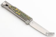 - Bead blasted titanium handle with textured Fat Carbon scales.