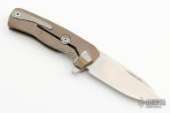 This model of the LionSteel ROK comes with a textured titanium handle and a satin finished blade made from M390. The retractable pocket clip is also black. The LionSteel ROK is an innovative integral frame lock folding knife built with the H.WAYL System, a LionSteel patent that creates a spring loaded retractable pocket clip. Pop it out for secure daily carry, and when you are ready to use the knife, the pocket clip retracts back into the handle. The ROK's single-piece titanium handle is stylishly textured for a secure grip, and comes outfitted with the Rotoblock safety system and a steel lockbar insert. Its blade is made from premium Bohler M390 and sports a flat grind and partial swedge. Features: Bohler M390 stainless steel, offering the pinnacle of corrosion resistance and edge retention. Ball-bearing pivot system for seamless opening and closing. Removable flipper tab that allows the user to customize how they want to use the knife. Comes with original box, tools and papers. Excellent condition.