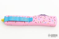 This Ultratech OTF automatic by Microtech features a D/E blue blade. Dessert Warrior aluminum contoured frame with tip down stainless steel clip. Dated 11/2022. Comes with original box and papers. Excellent condition.