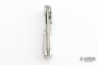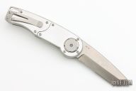 This is a knife from the GH-Series Gearhead folding knife by Mantis Knives. The "steampunk-style" Gearhead liner lock folder is equipped with a unique gear-driven pivot with one large gear, three small gears and a thumb lever used to deploy the blade when pushed down. It features a flat 3.38" plain edge tanto blade and measures just under 5" when closed. The gray handle scales are made from aluminum with a stainless steel backspacer and tip-up pocket clip. The GH2018TS Gearhead comes in a satin finished blade but is available in a variety of styles and finishes.