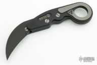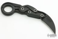 This Morphing Karambit MKV2 Rev.5 by Joe Caswell features a black chisel ground hawkbill blade. The handle is black titanium with tumbled titanium hardware and tip down spring clip. Comes with a cloth pouch and original box and papers. Excellent condition.
