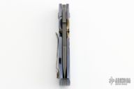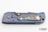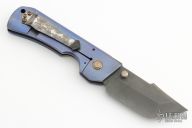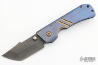 This Sanji by Billy Cho Knives features a dark stonewash finished blade with dual thumbstuds. The handle has an anodized and orange peel finished titanium frame, zirconium backspacer and a Steel Flame titanium tip up clip. Dated 12/2019 in backspacer. Nice detent, lockup and blade seating, rides on bearings. Has a couple light scratches, otherwise excellent condition. The consigner said this was the prototype, but it is not marked. I looked back through his Instagram and this is definitely the first one of these he made.