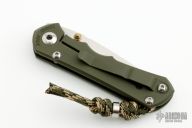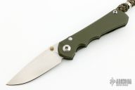 This Small Inkosi from Chris Reeve Knives features a tumble finished drop point S45VN blade with dual anodized thumb studs and notched thumbrest. The handle has an OD Green Cerakote titanium frame over a single barrel spacer with a matching bead blasted titanium tip up clip. Includes original box, paperwork and accessories. . Maker's card dated April 11, 2022.  Excellent condition.