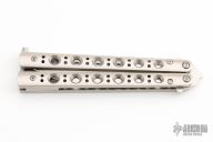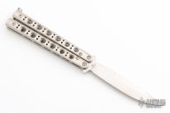 This Model 62 Balisong by Benchmade features a stonewashed spear point D2 blade with a false top edge. The handle has stainless steel handles and latch. Comes with original sheath. Excellent condition.