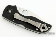This Lil' Native by Spyderco features a stonewashed blade with thumbhole. The handle has black G-10 scales with stainless steel backspacer and clip, 4-way reversible. Comes with original box and papers. Excellent condition.