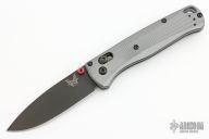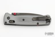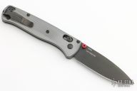 The Bugout features a drop point blade with a flat dark Cerakote finish. It's a manual opener with ambidextrous thumb studs. This AXIS lock has a milled aluminum frame and black hardware, a black mini deep-carry pocket clip, and a lanyard hole. Includes original box and papers. Excellent Condition.