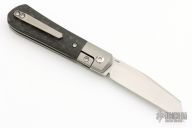 This Apache Front Flipper by Enrique Pena features a satin finished blade with a front flipper and notched thumbrest. The handle has titanium bolsters, carbon fiber scales with a titanium backspacer and matching tip up pocket clip. Includes a Pena X-Series padded box. Excellent condition.