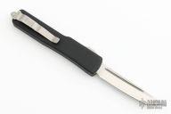 This UTX-70 OTF automatic by Microtech features a T/E satin finished blade with a standard edge. The handle has a black aluminum frame with blasted stainless steel tip down clip. Serial number 13682 and dated 07/2020. Comes with original box and papers. Excellent condition.