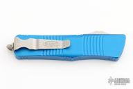 This Troodon by Microtech features a Satin finished double edged blade. Blue aluminum handle with glass breaker and stainless steel clip. Dated 07/2022, S/N 10845. Comes with original box and papers. Excellent condition.