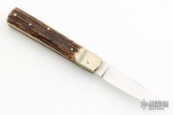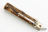 This leverlock auto by Hubertus features a mirror polished blade, nickel silver bolsters, stag scales, and brass liners and pins. Opens with a nice snap. Comes with original box. Very fast opening. Excellent Condition.