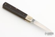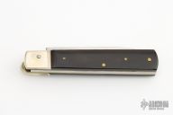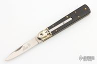This leverlock auto by Hubertus features a mirror polished blade, nickel silver bolsters, micarta scales, and brass liners and pins. Opens with a nice snap. Comes with original box. Very fast opening. Excellent Condition.