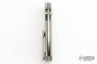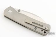 The Old Guard was designed by Ray Laconico and Sanford Owen as a back-to-basics style folder. The blade features a satin finish with dual thumbstuds. The handle features a bead blasted titanium lock side and matching titanium tip up pocket clip.  Includes a padded zippered case.  Excellent condition.