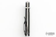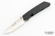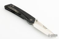 "The blade is convex on both sides in the tradition of the highly praised Japanese sword. This shape is both sharp and strong, and can still slice paper even after the 1,000 of hemp rope cuts. Using this blade form is one superb method of making an edge thick without losing of its sharpness. This is a knife of preeminent sharpness. You can enjoy its strong cutting capabilities for a long time. Even if used for rigorous cutting, the blade will not bite thanks to its convex shape. Other knives often will bite, and may nick if it is pulled out suddenly at that time. This knife scratches the plate of china. Please do not use it to cut food on the plate." The handle is sculpted black aluminum and tip up black stainless steel clip. Comes with original box and papers. #753 on blade. Excellent condition.