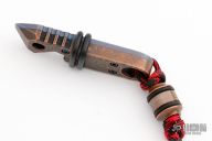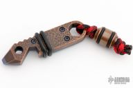 This Hybrid G3 by J. Woytaz features an anodized titanium and hammered copper frame with a copper bead. It features a pry tool, hex driver, bottle opener and 0.450" hex opening and .370" thick. Has some scuffs, otherwise excellent condition. Comes with COA dated 9-8-17