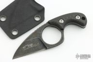 This knife by Max Knives is a Fred Perrin design, it features a black tumbled wharncliffe blade with finger hole, full tang construction. The handle has carbon fiber scales. Comes with a zippered case, kydex sheath and a length of paracord. New from maker at the 2023 Blade Show.