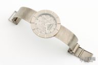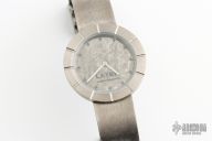This watch by Layer Watches is 100% made of titanium including the band. The dial is laser engraved to look like meteorite. Has a Swiss quartz movement. This one of a kind. Comes with a zippered case. New from maker at the 2023 Blade.