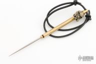 Titanium Toothpick by Max Knives. Toothpick unscrews and can be store in the tube or used as a spike. New from maker at the 2023 Blade Show.