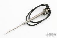 Titanium Toothpick by Max Knives. Toothpick unscrews and can be store in the tube or used as a spike. New from maker at the 2023 Blade Show.