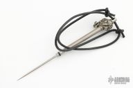 Titanium Toothpick by Max Knives. Toothpick unscrews and can be store in the tube or used as a spike. New from maker at the 2023 Blade Show.