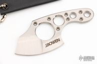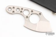 This micro hatchet features a satin finished compound blade with a skeletonized tang. Includes a Kydex neck sheath. Excellent Condition.