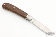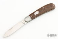 This Zulu Spear by Bobby Toole features a hand rub satin finished blade with long pull nail nick. The handle has fluted stainless steel bolsters, Westinghouse micarta covers with stainless steel escutcheon, stainless steel liners and spring. Has half stop, flush in all positions. Comes with zipper case and maker's card. Has some light scratches, otherwise excellent condition.