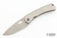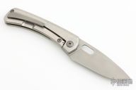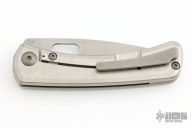 This Lamia by SPK Unlimited features a stonewashed blade with thumbhole. The handle has a milled titanium frame with darkened hardware, backspacer and tip up clip with hidden screws. Comes with a zippered case. Excellent condition.