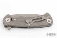 This Project X Flipper by Rick Hinderer Knives features a working finished Magnacut blade, notched thumbrest and flipper, dual thumbstuds. The handle has a black G-10 scale, and working finished titanium frame with matching clip. Nice lockup, seating, and detent. Comes with original box and extra hardware. Excellent Condition.