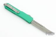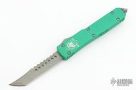 This Ultratech Hellhound Tanto by Microtech is the 2016 G8 Show Special. The handle is green aluminum with Apocalyptic finished hardware and clip. The blade has an Apocalyptic finished tanto blade with notched thumbrest. Comes with original box and papers. From the USN G8 Show. S/N 00036 and dated 08/2016. Excellent condition.