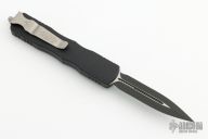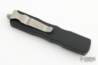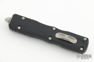 This Dirac OTF automatic by Microtech features a D/E black blade with a standard edges. The handle is black aluminum with stainless steel tip down clip. Serial number 440 and dated 05/2019. Comes with original box and papers. Excellent Condition.