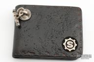 This 100 Year Wallet by Starlingear has 8 card slots, 4 on each side with a hidden pockets behind the card slots. Has a sterling silver Starlingear logo and hand pinned with steel pins and chain attachment. Excellent condition. 4.5" x 3.75" closed.