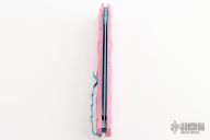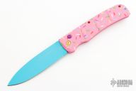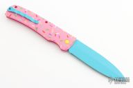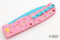 Have you ever been unfortunate enough to have to share a donut? Your plight only gets worse when you find you have to cover your high-speed, low-drag, modified, custom, mirror-edged piece of pocket jewelry in sticky sweetness. What you need is a knife designed from the ground up to go to war with a donut. And although its path to existence was unorthodox, the Dessert Warrior is here! This automatic will snap open before anyone can take more than their half of the donut. The handle is bright pink with sprinkles, and the blade has a candy blue finish, making the knife blend in with the pretty pastries of the shop. Gone are the days of not having the right tool for the job!