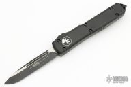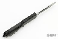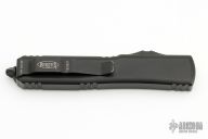 This Ultratech OTF automatic by Microtech features a S/E black finished blade. Black aluminum frame with black hardware and stainless steel clip. Glass breaker. Serial number 228739 and dated 12/2021. Has some wear on the clip, otherwise excellent condition.