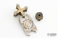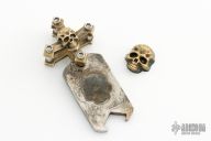 Steel Flame Brass Darkness Tag Holder with Warrior Dog Tag EBO (Emergency Bottle Opener) from Steel Flame features a forced patina finish and ring that allows for easy attachment to a keyring, necklace, etc. The skull came unsoldered from the dog tag otherwise Excellent condition.