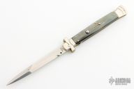 Angelo Campolin Sr. was born in 1923 in Maniago, Italy. He worked on perfecting his knife making skills before WWII and at this time made his first switchblades. After the war, in 1947 he started his company and made 30 stilettos with the marking “Angelo Campolin”. In the 1970’s Angelo’s son Gianni started to work in the company and they were specializing in folding hunting knives and also manual folding stilettos for the Robert Klaas company in Solingen Germany with their Kissing Cranes mark. In 2002 American switchblade collectors Dan Fuller, Brad West, and Tim Zinser were visiting Maniago and enjoying a few glasses of wine in a bar with Angelo Jr. and Gianni. The discussion was about a new name for some knife projects they wanted to pursue. It was Brad West that suggested the tang stamp should be AGA, for Angelo, Gianni, Angelo, thus representing three generations in the knife making business. The Campolins liked it and it stuck. In the beginning it was just a few items, but grew to the point where now there are 12 models and different scale options. The goal has been to offer quality switchblades using the old methods and traditions. Being a collector himself, Angelo Jr. knows what others like. The company headquarters has moved to Austria with production still in the original Maniago shop, as well as the others in Maniago that produce the knives for A.G.A. Campolin.