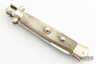 This Fosolone Auto by Renzo Passcotto features a mirror finished blade, honey horn scales, brass liners and nickel silver bolsters. Has safety. Excellent condition.