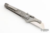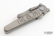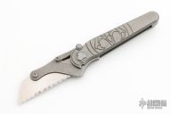 G&G Hawk Shortcut utility knife. Stonewashed Titanium Frame and flipper. Snappy flipping action. Solid lockup, blade seating and centering. Comes with Hawk pouch and tools to replace the blades.