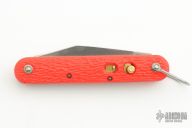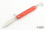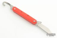 This knife by Camillus features a clip point blade. The handle has orange jigged scales, stainless steel liners and backspacer. Has Safety. Excellent Condition.